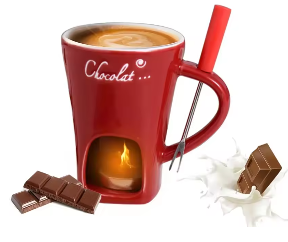 Es besteht aus hochwertiger Keramik und ist mit einer Edelstahlgabel und einer Teekerze ausgestattet.Geeignet zum Eintauchen von Obst, Brot, Keksen oder anderen köstlichen Speisen und ist spülmaschinenfest.Eine tolle Geschenkauswahl für Valentinstag, Geburtstage und Feiertage.